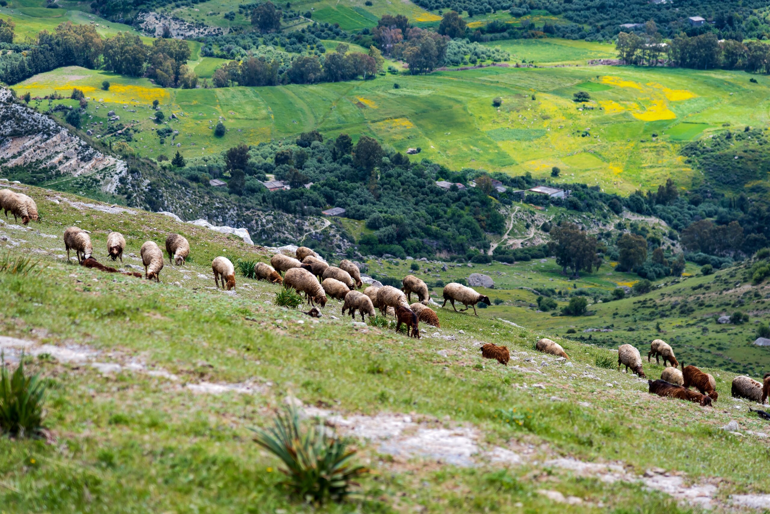 Daily life at Anis Heryeni's 135-hectare Zaghouan farm is a blend of traditional grazing and strategic semi-intensive management. Alongside two family members, he oversees 306 Barbarine and Sardi sheep, prioritizing natural pasture supplemented by olive and vegetable waste to cut costs. Without personal machinery, his routine involves coordinating rentals and managing a precise breeding cycle geared toward religious holidays. From monitoring spring mating to ensuring lambs hit their 50kg sale weight, Anis relies on 30 years of expertise to run a lean, circular, and self-reliant operation.